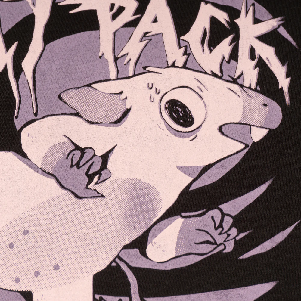 These shirts are 100% cotton and are screen printed in house. This shirt features a two color print on the front and a one color print on the sleeve. Holy halftones!! I went a little hard on those lol. Grab this tee for someone who wants to be part of the rat pack. B)